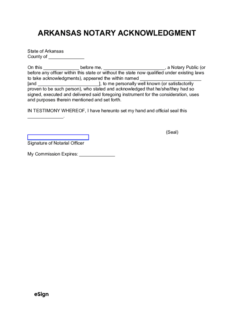ARKANSAS NOTARY ACKNOWLEDGMENT State of Arkansas County of ___ On this ___ before me, ___, a Notary Public (or before any officer within this state or without the state now qualified under existing
