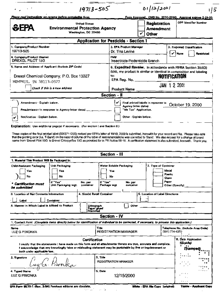 , ..., .,_. I/S......\”\” Poor.v\'\” Environmental Protection Agency2. EPA Product Manager Dr. Tina Levine15Go0RutrictodInsecticideRodenticide Branch!5. Name and Address of Applicant (Include