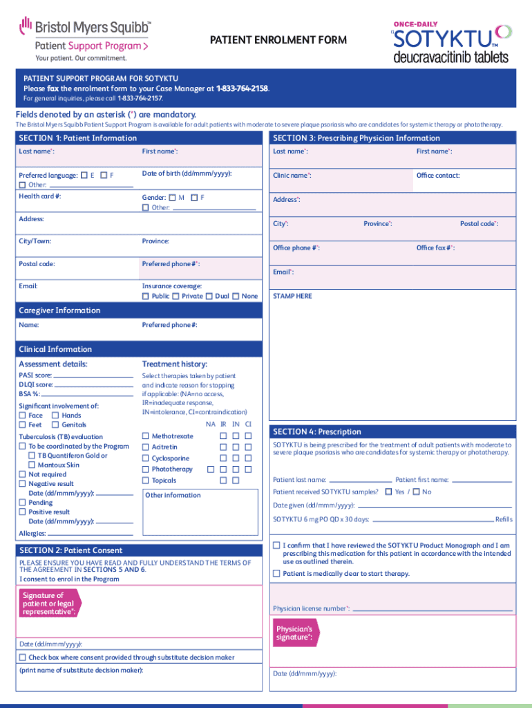 PATIENT Enrollment FORM PATIENT SUPPORT PROGRAM FOR SOTU Please fax the enrollment form to your Case Manager at 18337642158. For general inquiries, please call 18337642157. Fields denoted by an asterisk