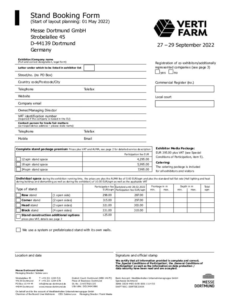 Stand Booking Form(Start of layout planning: 01 May 2022)Jesse Dortmund GmbH