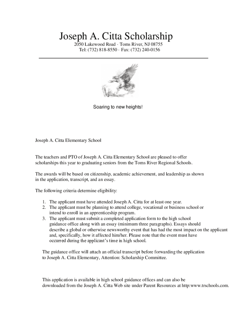 Submit the completed packet to the Joseph Citta School office in Toms River.