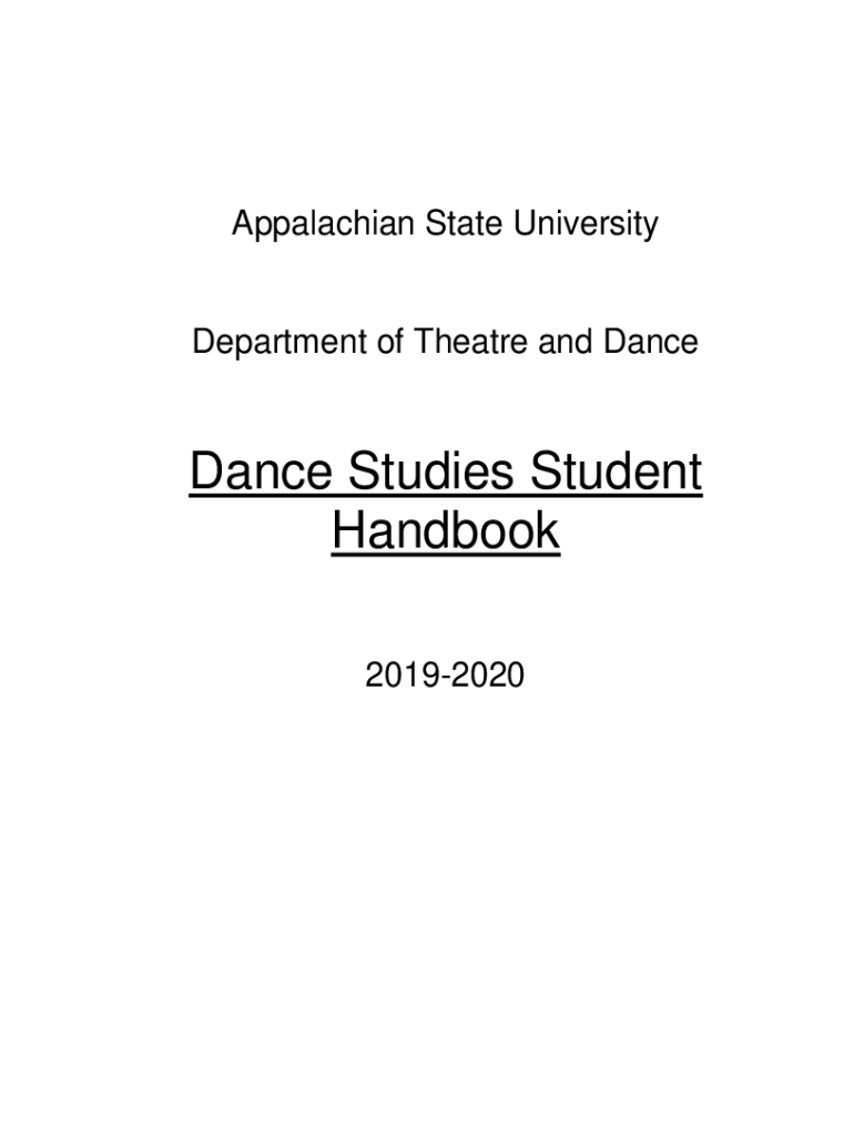 Appalachian State UniversityDepartment of Theater and Ascendance Studies Student Handbook 201920202 DANCE STUDIES STUDENT HANDBOOKTABLE OF CONTENTS About the Dance Studies Program...4 Mission Vision
