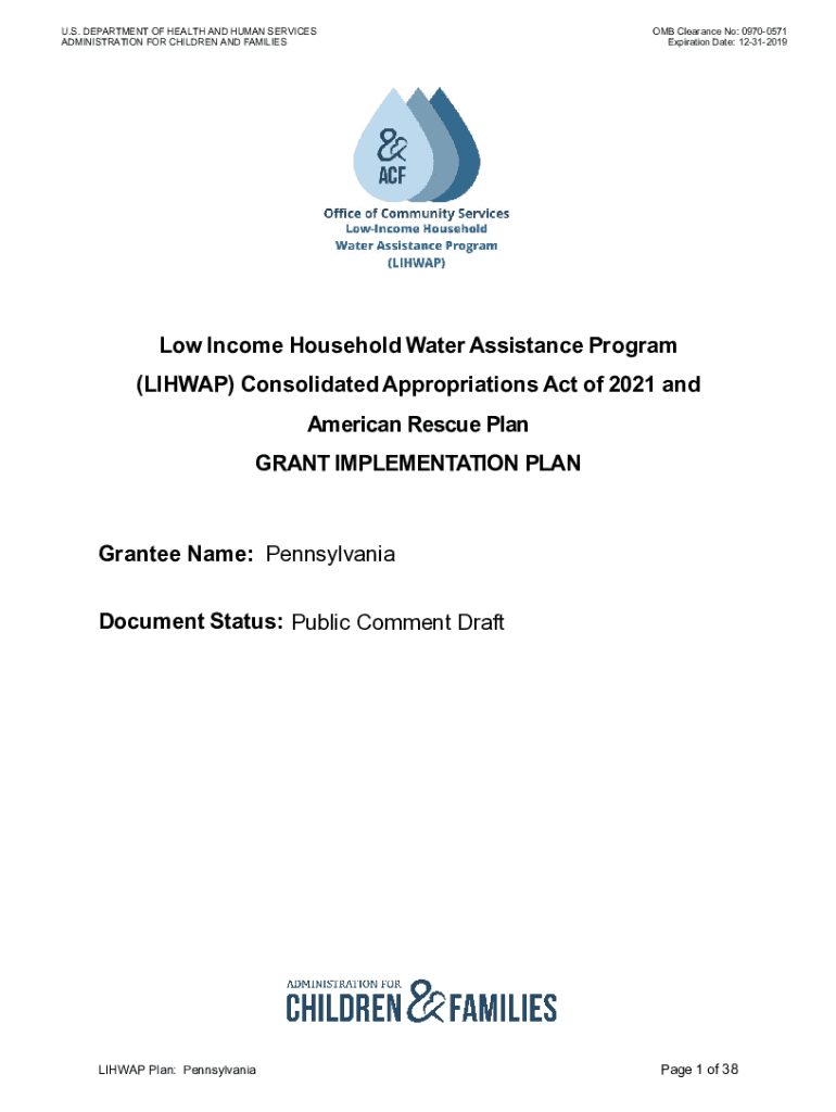 U.S. DEPARTMENT OF HEALTH AND HUMAN SERVICES ADMINISTRATION FOR CHILDREN AND FAMILIES OMB Clearance No: 09700571 Expiration Date: 12312019Low Income Household Water Assistance Program (LIH WAP) Consolidated