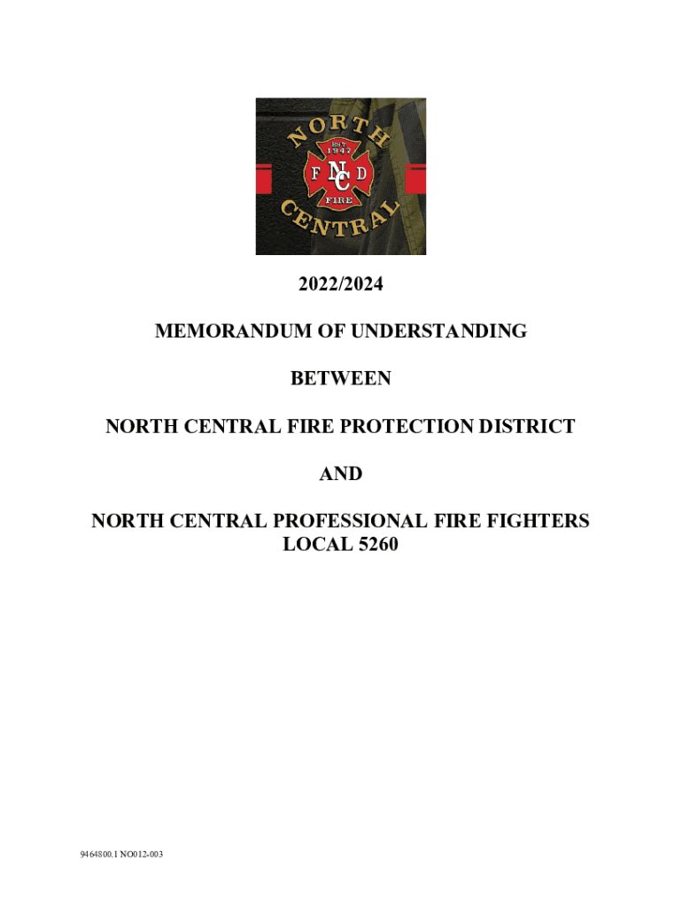 2022/2024 MEMORANDUM OF UNDERSTANDING BETWEEN NORTH CENTRAL FIRE PROTECTION DISTRICT AND NORTH CENTRAL PROFESSIONAL firefighters LOCAL 52609464800.1 NO012003MEMORANDUM OF UNDERSTANDING NORTH CENTRAL
