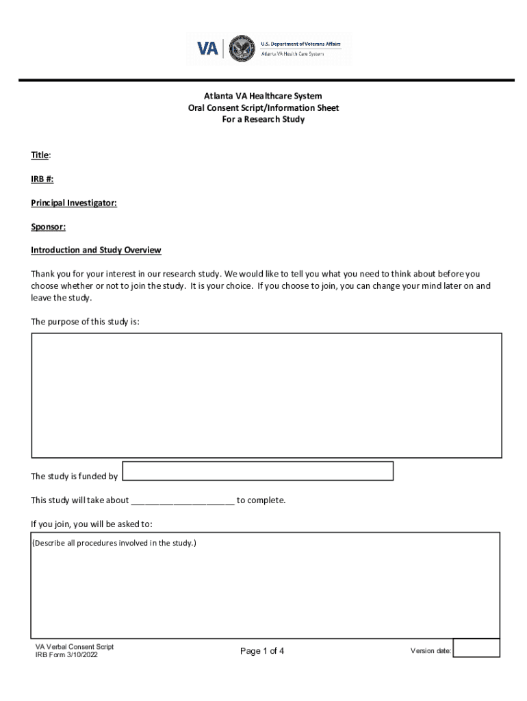 Get the free Atlanta VA Healthcare System Oral Consent Script/ ...