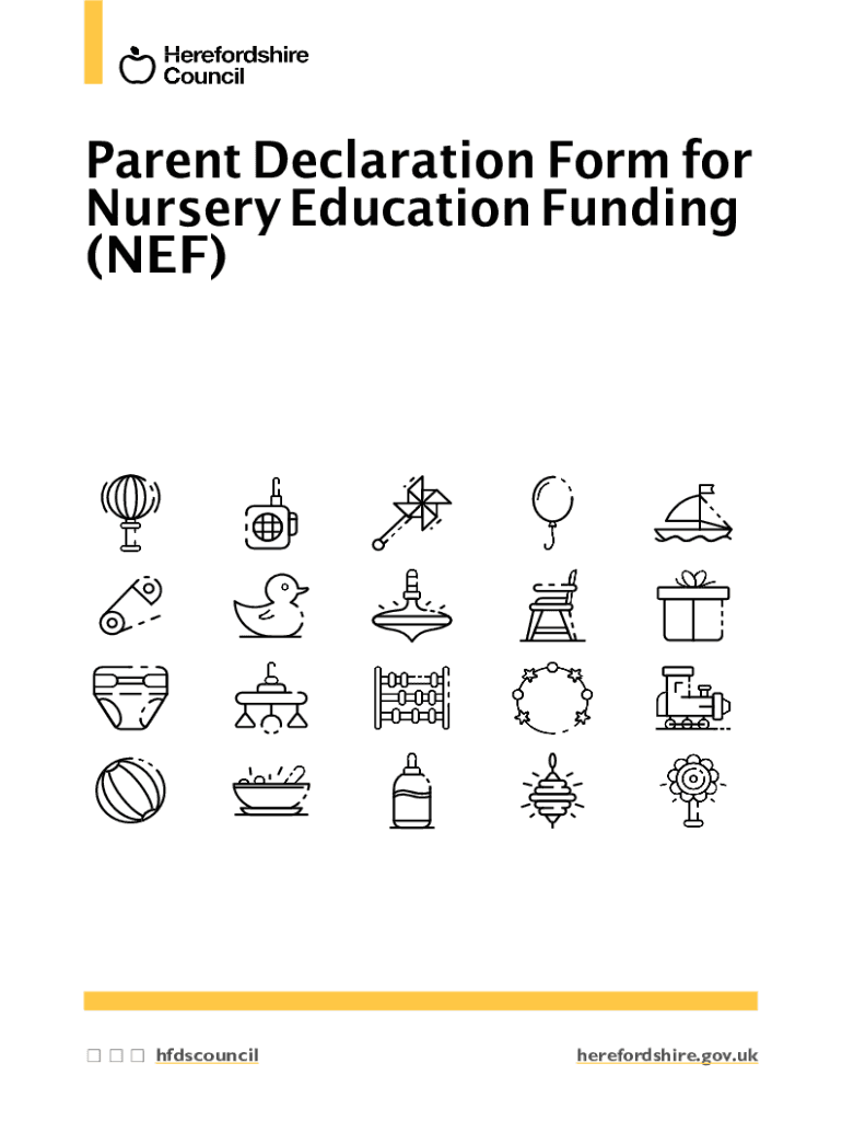 (NEW) hfdscouncilherefordshire.gov.ukContentsParent Declaration Form for Nursery Education Funding (NEW)3Childs Details (to be completed by the