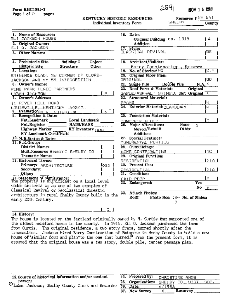 17. Style:ELI JACKSON HOUSE2. Original Owner: