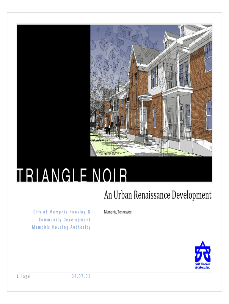 TRIANGLE NOIRAnUrbanRenaissanceDevelopmentCityofMemphisHousing& CommunityDevelopment MemphisHousingAuthority 1|P a g e 04.07.08Memphis,Tennessee Contents HISTORYOFMEMPHIS PASTCOTTON&COMMERCE3PRESENTDOWNTOWNRENAISSANCE3FUTURETRANSFORMINGPUBLIC