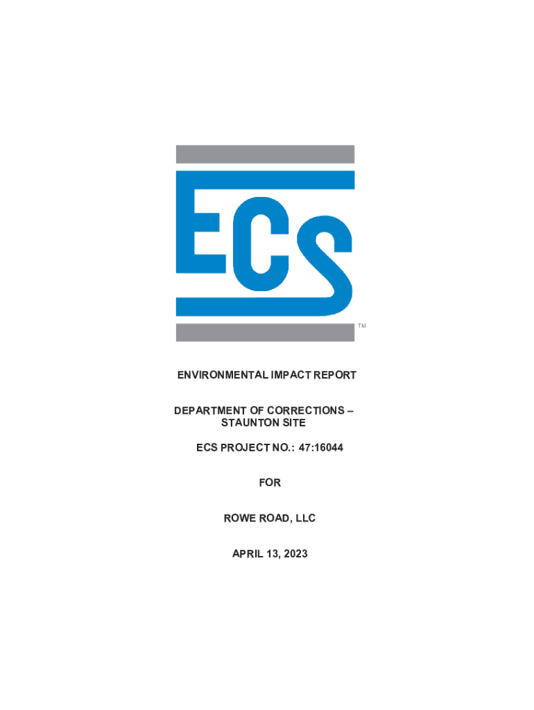 ENVIRONMENTAL IMPACT REPORT DEPARTMENT OF CORRECTIONS STAUNTON SITE ECS Projects NO.: 47:16044 FOR ROWE ROAD, LLC APRIL 13, 2023April 13, 2023 Mr. Scott Reid Rowe Road, LLC 2101 Winston Ave Roanoke,