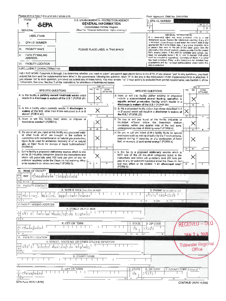 Please print or type in the unshaded areas only. FORM. EPA I. D. NUMBERGENERALINFORMATIONEPA1Form Approved. 0 MB No. 20400086. U.S. ENVIRONMENTALPROTECTIONAGENCY Consolidated Permits Program (Read