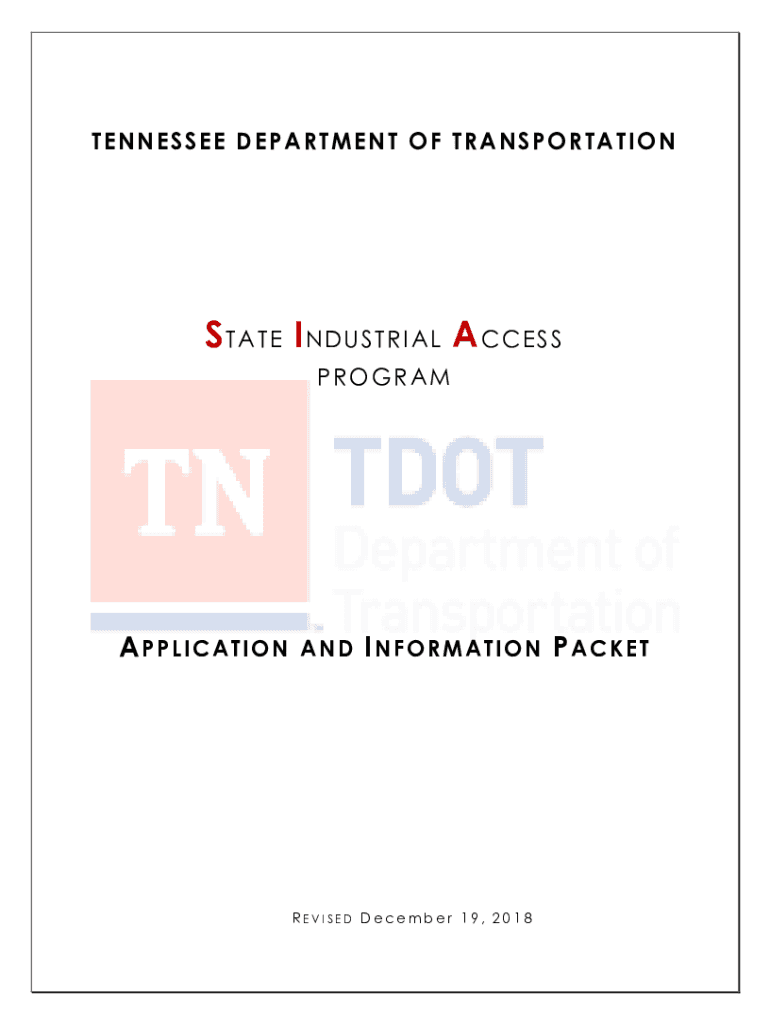 TENNESSEE DEPARTMENT OF TRANSPORTATIONS T A T E I N D US T R I A L A C C E S PROGRAMAPPLICATIONAND INFORMATIONREVI USED December 19, 2018PACKETTENNESSEEDEPARTMENTOFTRANSPORTATIONAPPLICATION FORTHESTATEINDUSTRIALACCESSPROGRAMGeneralInformation