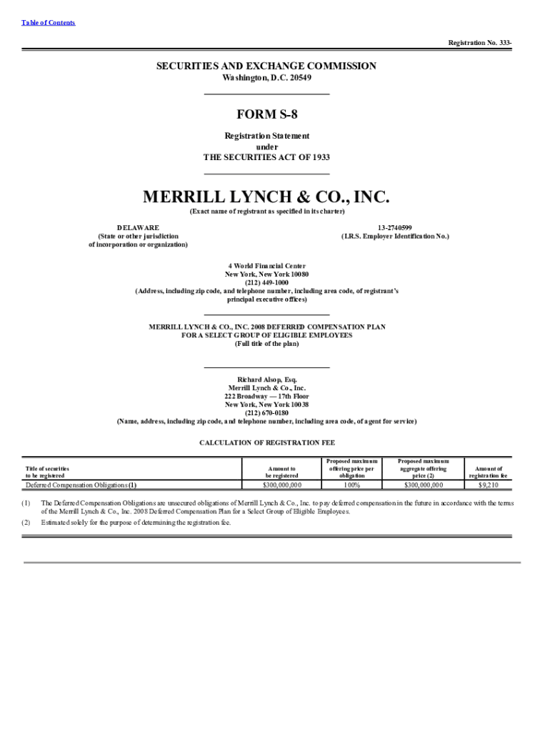 Table of Contents Registration No. 333SECURITIES AND EXCHANGE COMMISSION Washington, D.C. 20549FORM S8 Registration Statement under THE SECURITIES ACT OF 1933MERRILL LYNCH & CO., INC. (Exact name