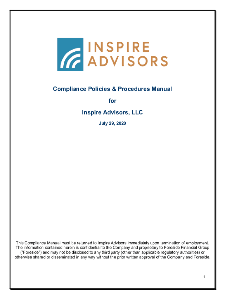 [FIRM LOGO]Compliance Policies & Procedures Manual for Inspire Advisors, LLC July 29, 2020This Compliance Manual must be returned to Inspire Advisors immediately upon termination of employment. The