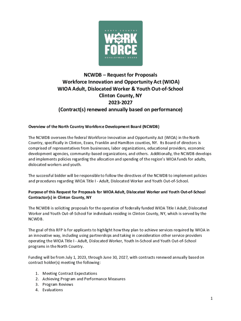 Get the free NCWDB Request for Proposals Workforce Innovation and ...