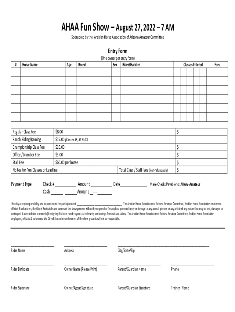 Sponsored by the: Arabian Horse Association of Arizona Amateur CommitteeEntry Form