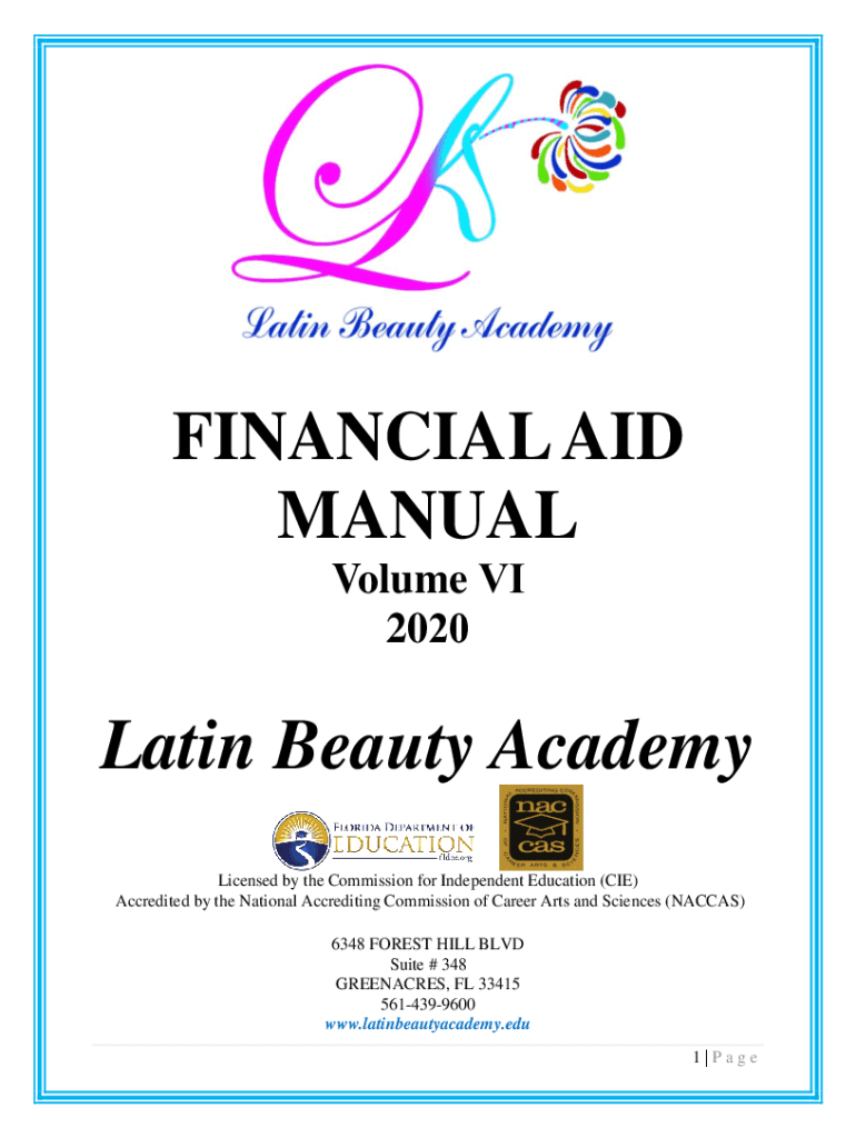 FINANCIAL AID MANUAL Volume VI 2020Latin Beauty Academy Licensed by the Commission for Independent Education (CIE) Accredited by the National Accrediting Commission of Career Arts and Sciences (NASCAR)