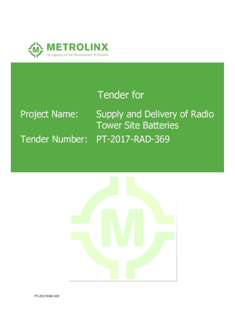 Tender for Project Name:Supply and Delivery of Radio Tower Site Batteries Tender Number: PT2017RAD369PT2017RAD3691.0List of Contents The following documents hereby form part of this Tender Document: