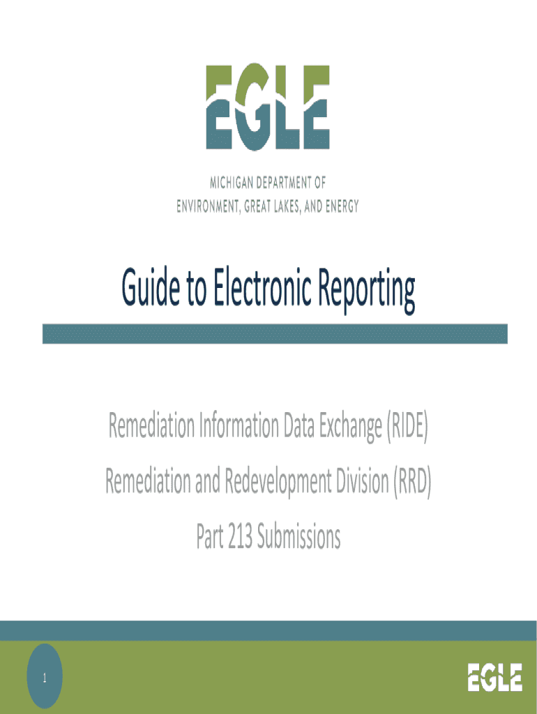 Pm Ow ll PmCv4OLCMICHIGAN DEPARTMENT OF ENVIRONMENT, GREAT LAKES, AND ENERGYGuide to Electronic Reporting (RIDE) Remediation Information Data Remediation Data Exchange (RIDE)Remediation and Redevelopment