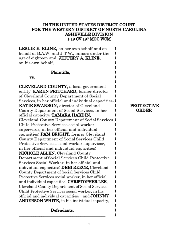 IN THE UNITED STATES DISTRICT COURT FOR THE WESTERN DISTRICT OF NORTH CAROLINA ASHEVILLE DIVISION 1:19 CV 197 MOC CM LESLIE E. KLINE, on her own behalf and on behalf of B.A.W. and J.T.W., minors under