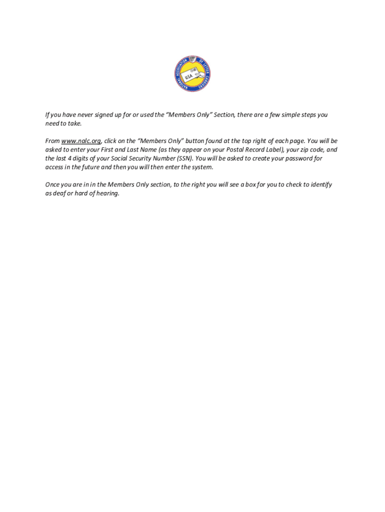 If you have never signed up for or used the Members Only Section, there are a few simple steps you need to take. From www.nalc.org, click on the Members Only button found at the top right of each