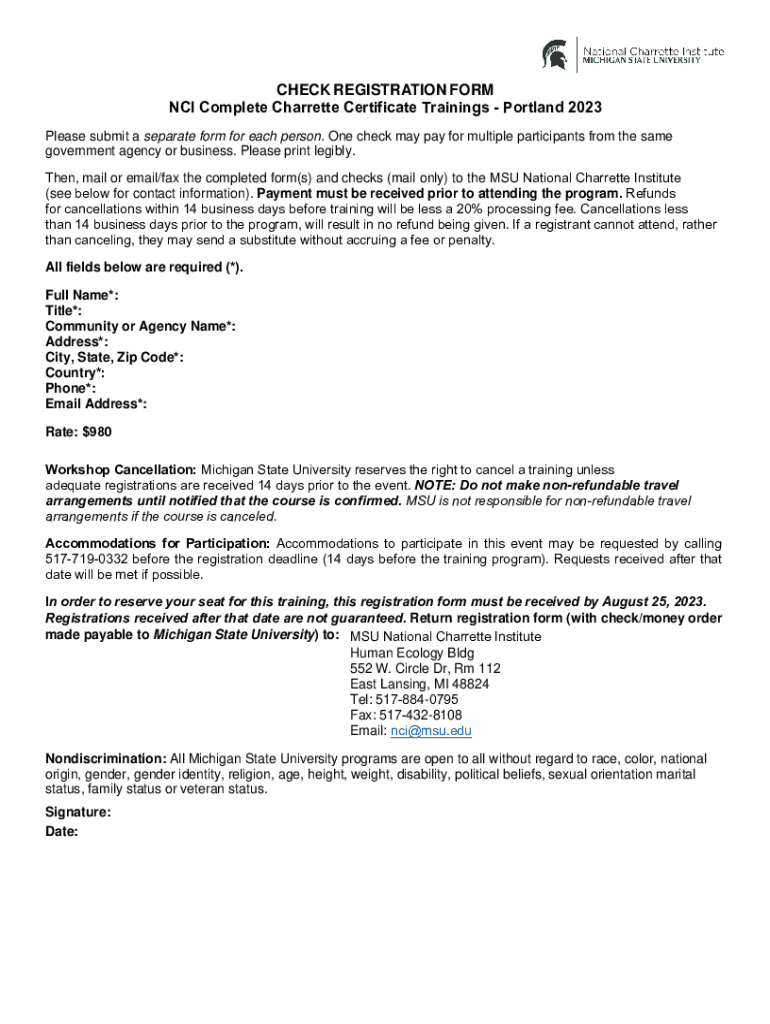 Get the free NCI Charrette System Trainings - Check Registration Form. charrette training