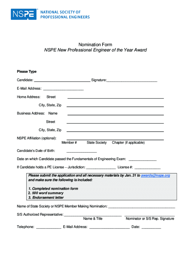 Email, fax, or share your nspe new professional engineer form via URL. You can also download, print, or export forms to your preferred cloud storage service.