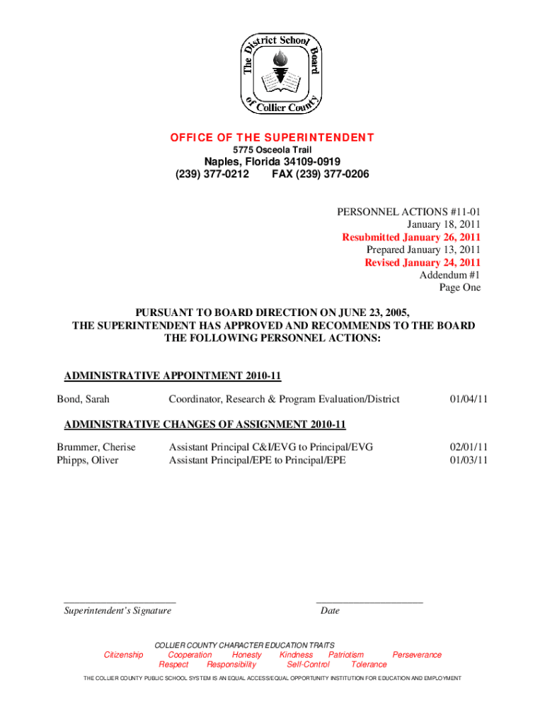 FAX (239) 3770206PERSONNEL ACTIONS #1101