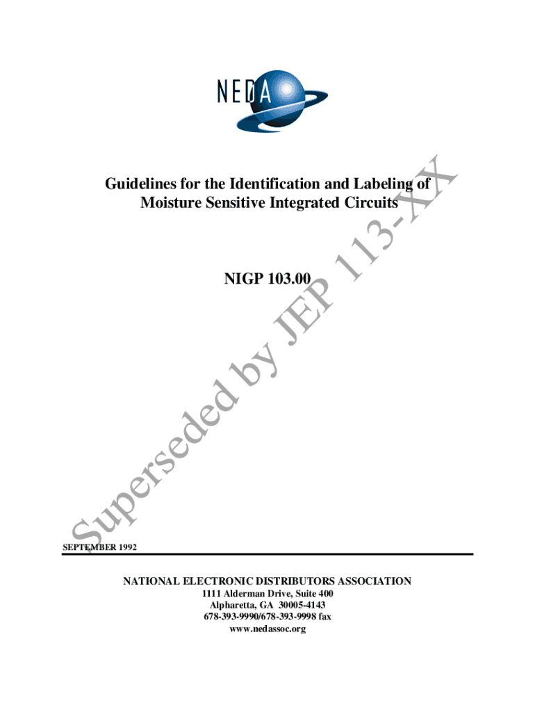 Guidelines for the Identification and Labeling of Moisture Sensitive Integrated Circuiting 103.00SEPTEMBER 1992NATIONAL ELECTRONIC DISTRIBUTORS ASSOCIATION 1111 Alderman Drive, Suite 400 Alpharetta,