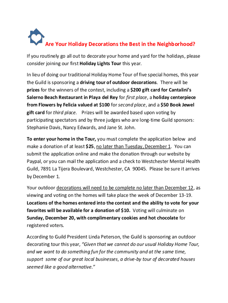 Are Your Holiday Decorations the Best in the Neighborhood? If you routinely go all out to decorate your home and yard for the holidays, please consider joining our first Holiday Lights Tour this year.