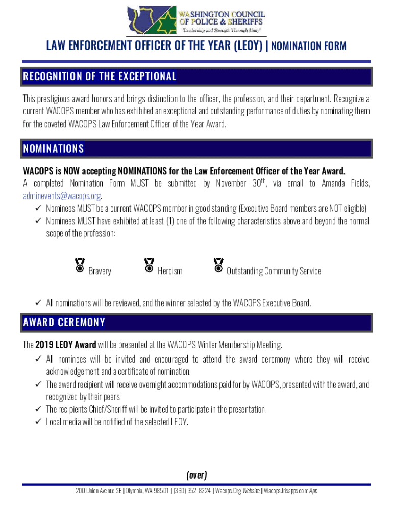 Get the free Law Enforcement Officer of the Year Award Nomination & ...