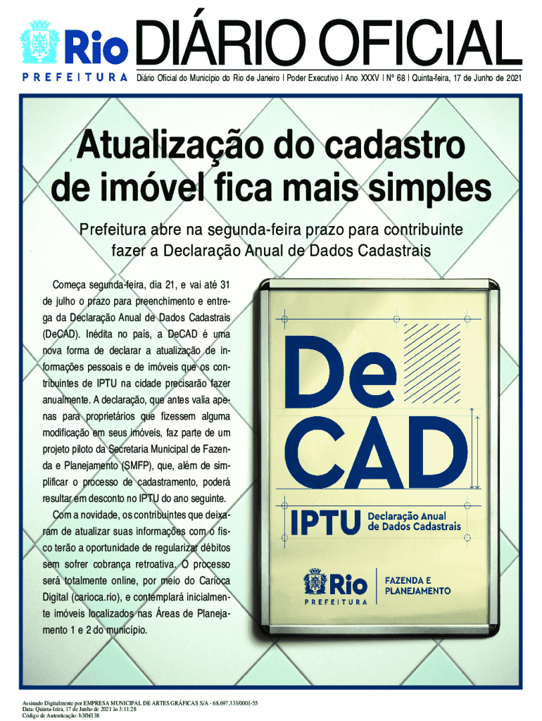 Dario Official do Municipal do Rio de Janeiro | Power Executive | ANO XXXV | N 68 | Quintafeira, 17 de Juno de 2021Atualizao do Castro