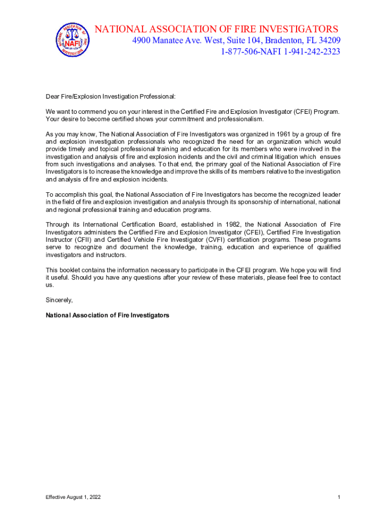 NATIONAL ASSOCIATION OF FIRE INVESTIGATORS4900 Manatee Ave. West, Suite 104, Bradenton, FL 34209 1877506NAFI 19412422323Dear Fire/Explosion Investigation Professional: We want to commend you on your