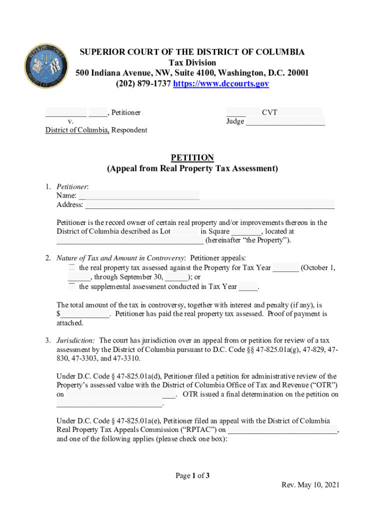 SUPERIOR COURT OF THE DISTRICT OF COLUMBIA Tax Division 500 Indiana Avenue, NW, Suite 4100, Washington, D.C. 20001 (202) 8791737 https://www.dccourts.gov___ ___, Petitioner v. District of Columbia,