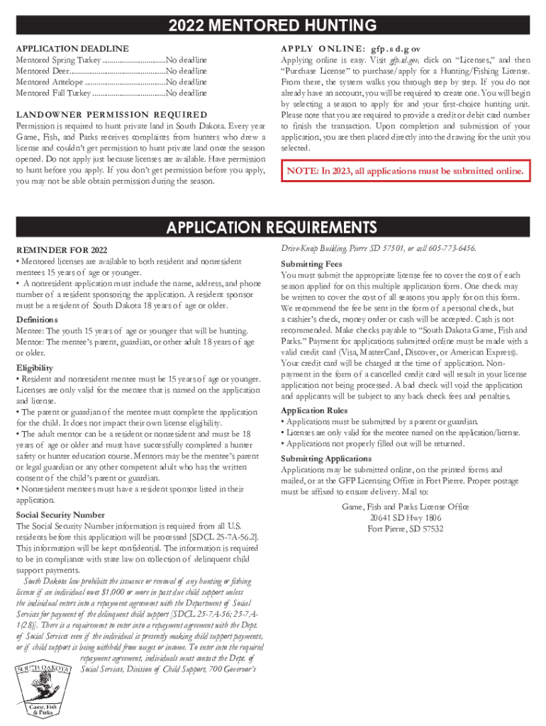 Get the free Non-Resident Landowner Program Deer and Turkey Hunting ... - gfp sd