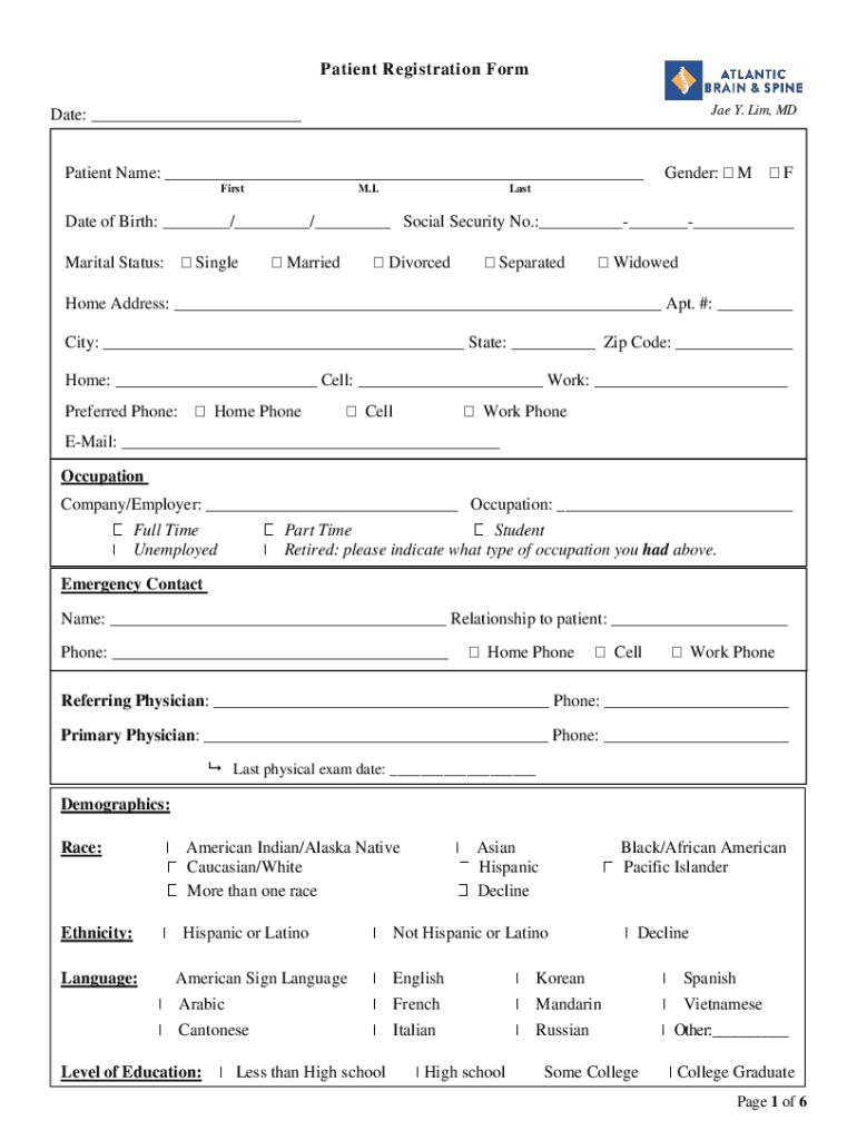 Get the free Patient Registration Form Occupation Company/Employer