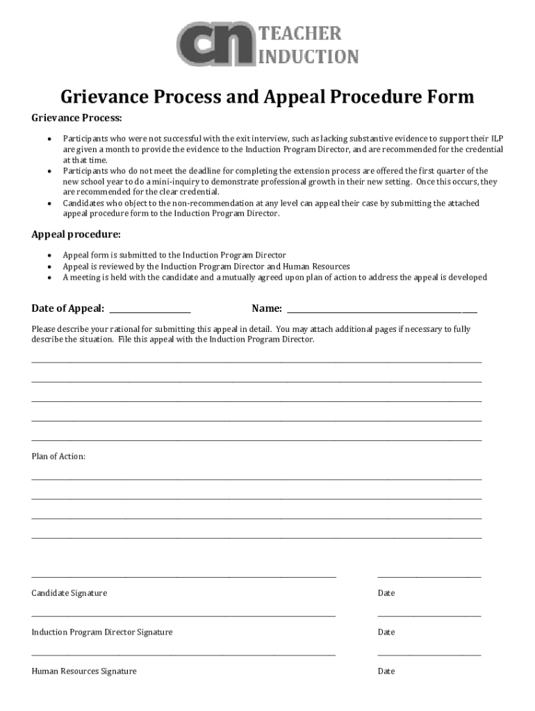 Grievance Process and Appeal Procedure Form Grievance Process: Participants who were not successful with the exit interview, such as lacking substantive evidence to support their ILP are given a month