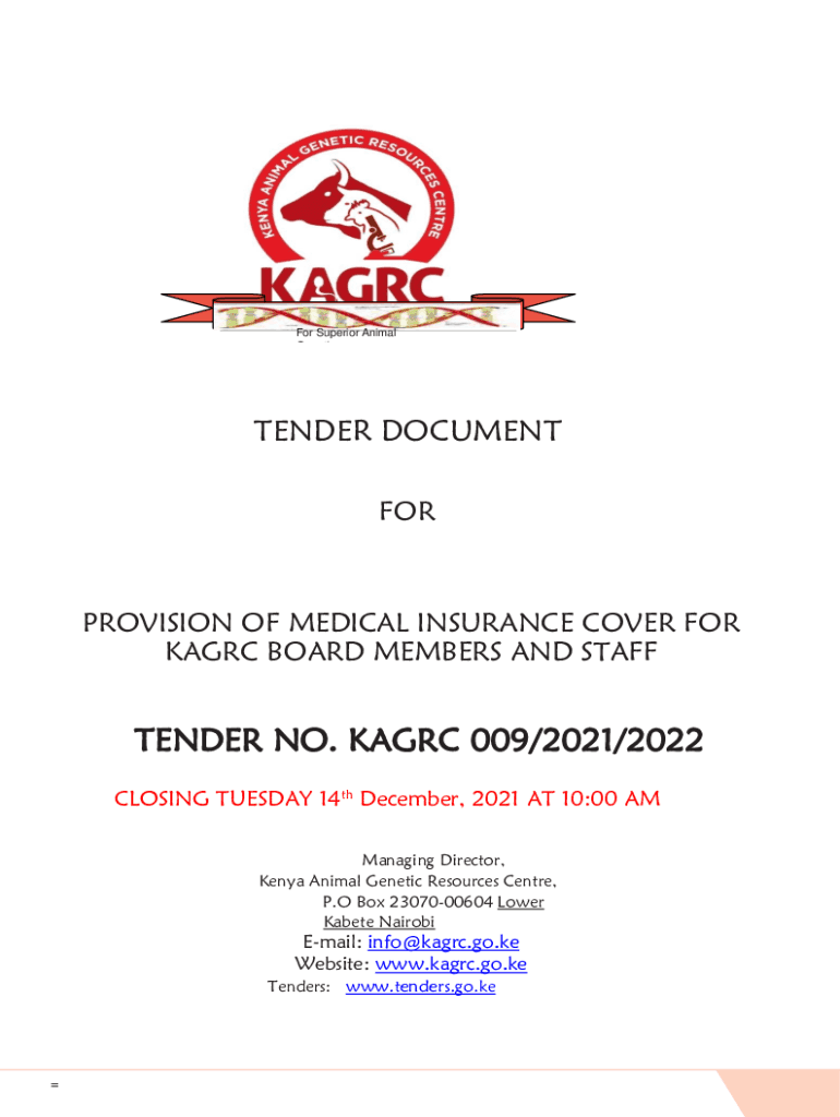 For Superior Animal GeneticsTENDER DOCUMENT PROVISION OF MEDICAL INSURANCE COVER FOR MAGIC BOARD MEMBERS AND STIFFENER NO. MAGIC 009/2021/2022 CLOSING TUESDAY 14th December 2021 AT 10:00 AM Managing