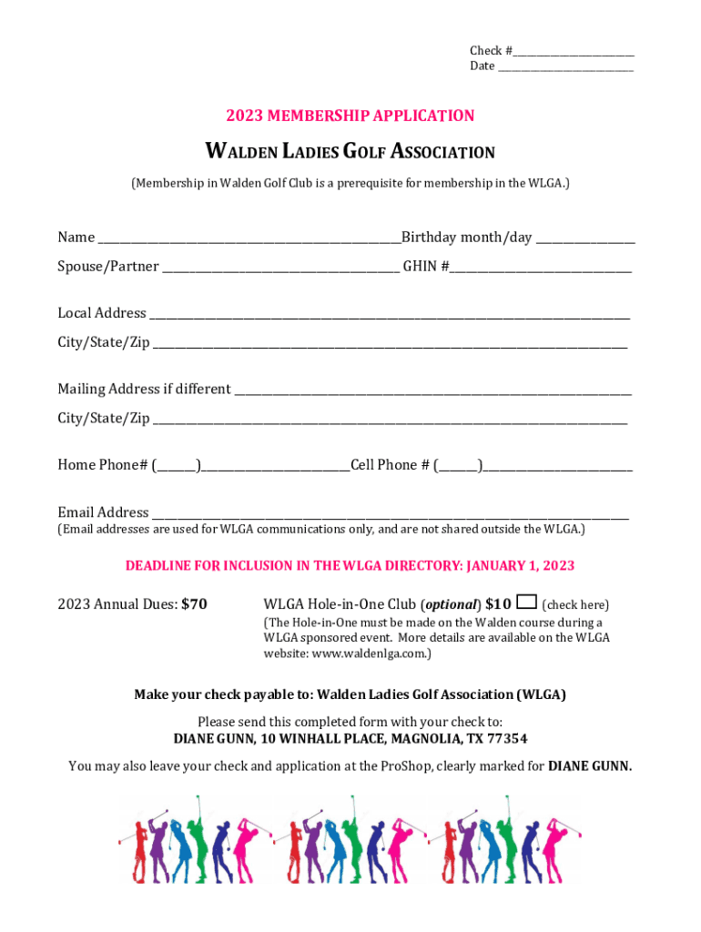 Check #___ Date ___2023 MEMBERSHIP APPLICATIONWALDEN LADIES GOLF ASSOCIATION (Membership in Walden Golf Club is a prerequisite for membership in the LGA.) Name ___Birthday month/day ___ Spouse/Partner