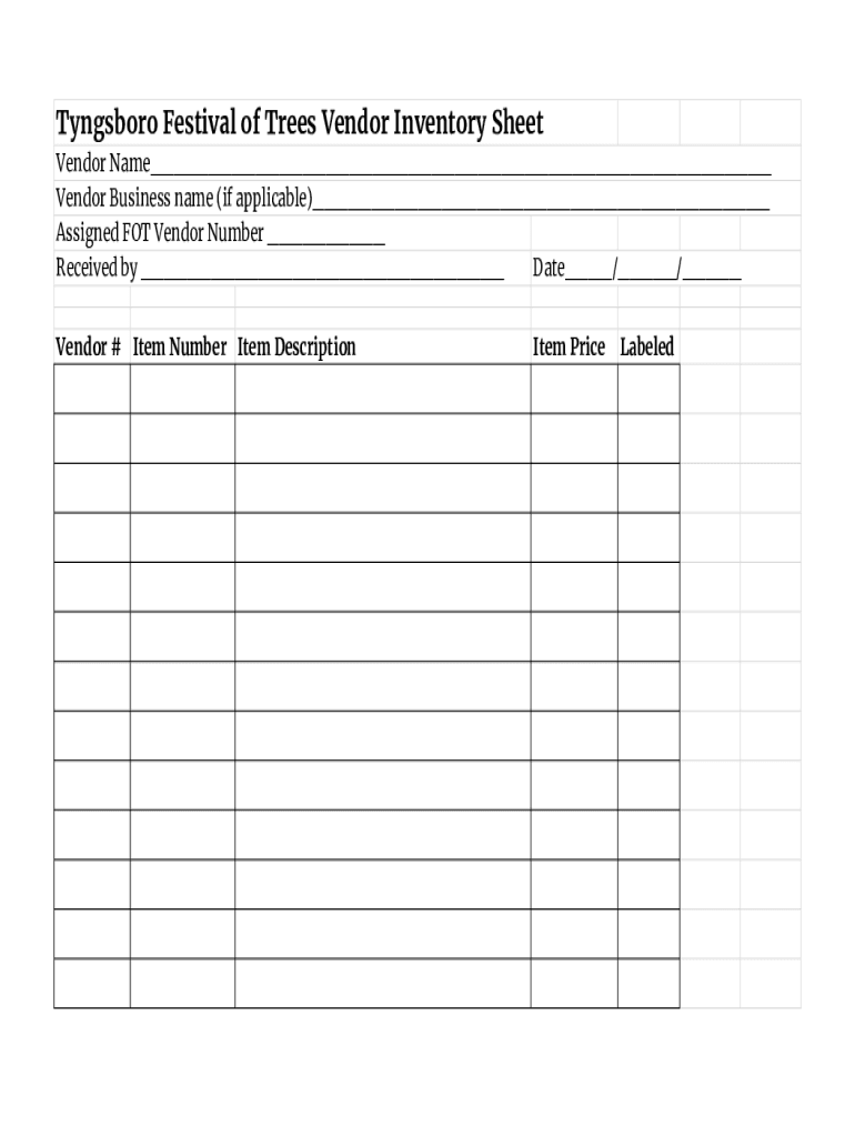 Get the free Tyng FOT Vendor Inventory