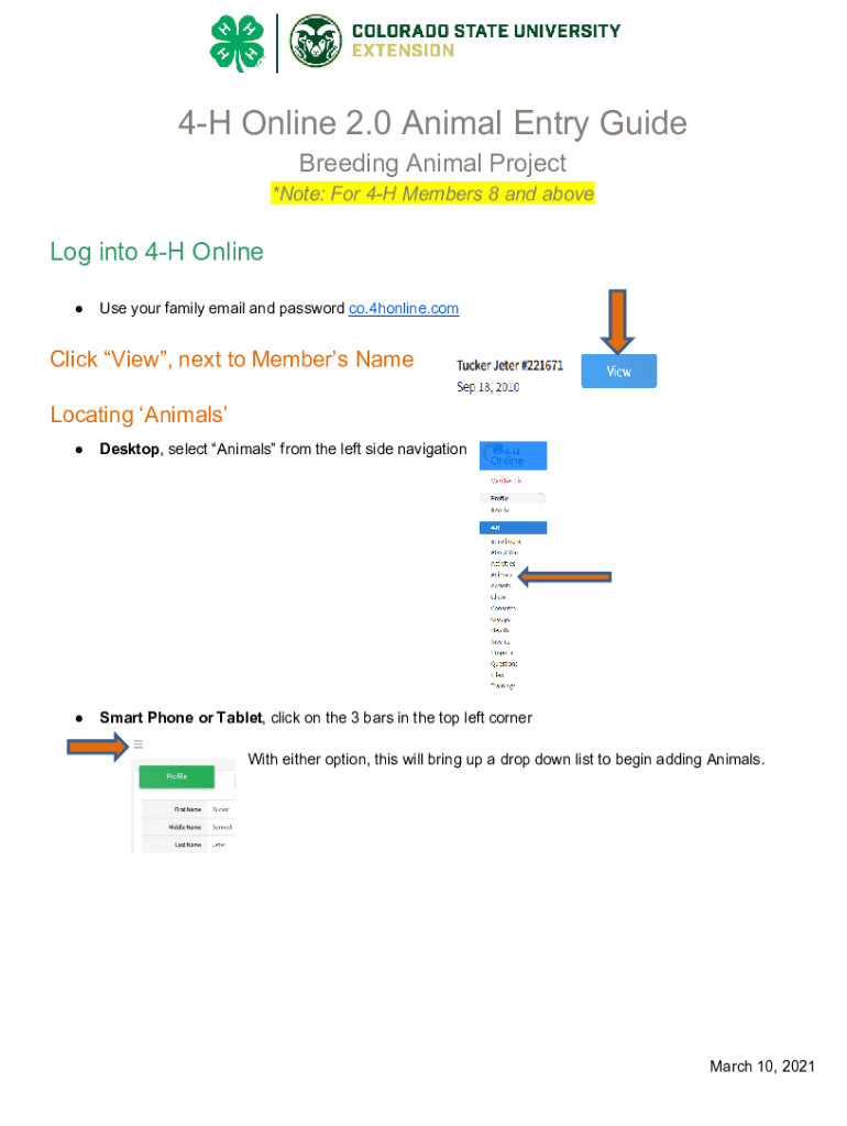 4H Online 2.0 Animal Entry Guide