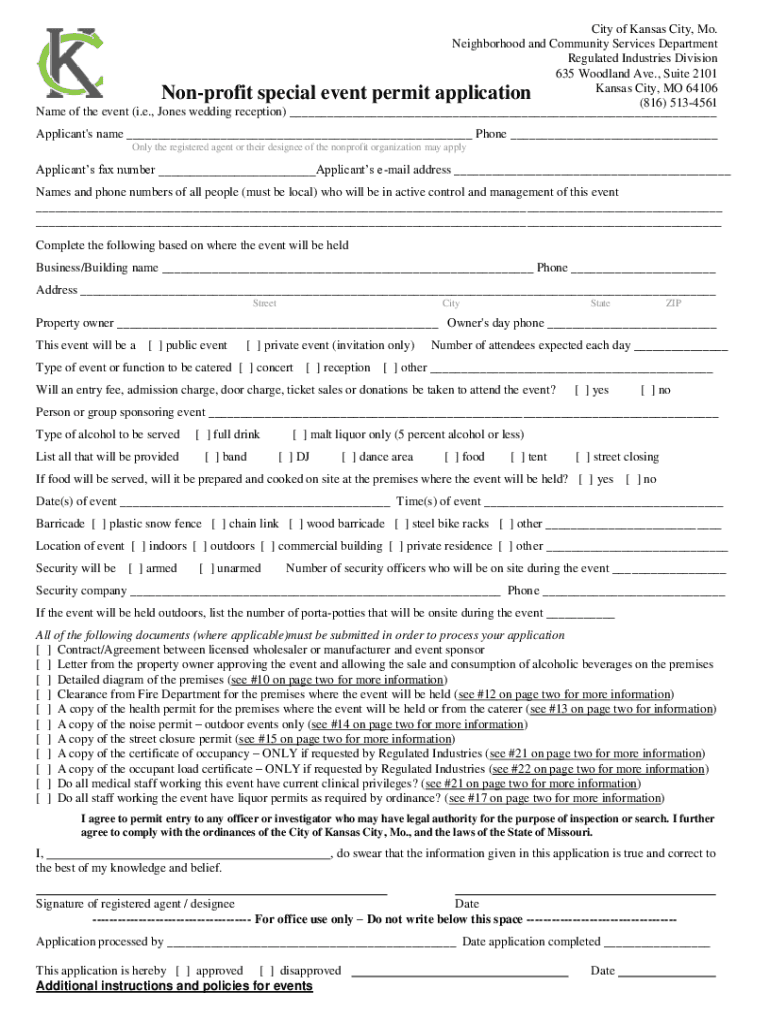 City of Kansas City, Mo. Neighborhood and Community Services Department Regulated Industries Division 635 Woodland Ave., Suite 2101 Kansas City, MO 64106 (816) 5134561 Name of the event (i.e., Jones