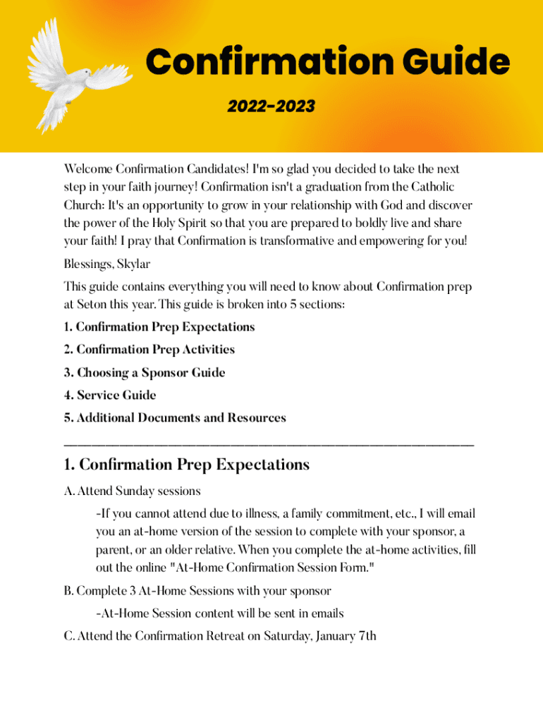 Blessings, Skylar This guide contains everything you will need to know about Con ration prep at Seton this year. This guide is broken into 5 sections: 1. Con ration Prep Expectations 2. Con ration