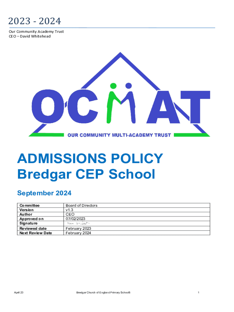 CEO David WhiteheadADMISSIONS POLICY