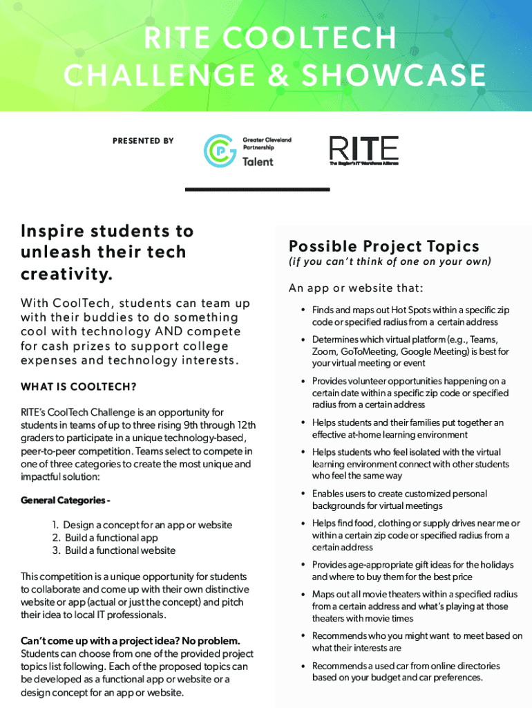 RITE CALTECH CHALLENGE & Showcase P R E S E NT E D Inspire students to uncle ash their tech c re activity. With Cool Te ch, s t u de n t s c an n t e an m up with TH an r bud die s t o d o s o m e