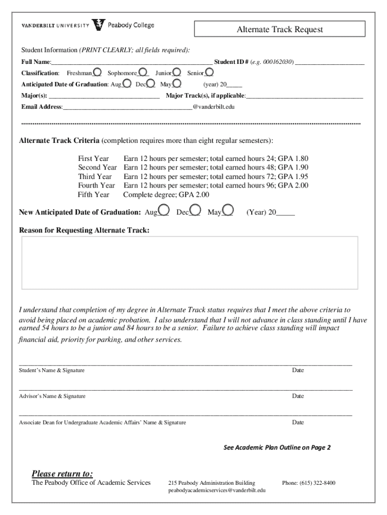 Get the free Alternate Track Request Please return to: - peabody vanderbilt