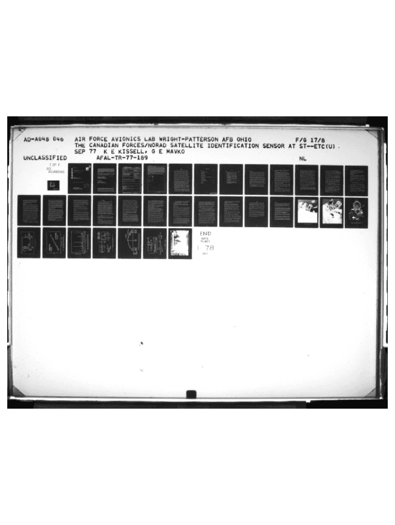 AOAOk6 0140 AIR FORCE clinics LAO WRIGHTPATTERSON AF8 OHIO F/S 17/a CANAL 3RCES/NORAD SATELLITE IDENTIFICATION SENSOR AT STET (IJ) s SELL. 6 E MAV KO SEP 71 V 77189 NL_ F ! ! , ___ _ l f flt ED UNCLASP