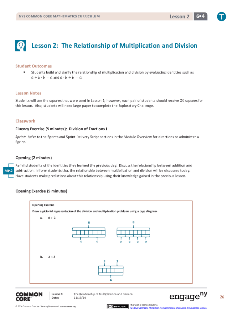 Lesson 2NYS COMMON CORE MATHEMATICS CURRICULUM think64Lesson 2: The Relationship of Multiplication and DivisionStudent Outcomes Students build and clarify the relationship of multiplication and division
