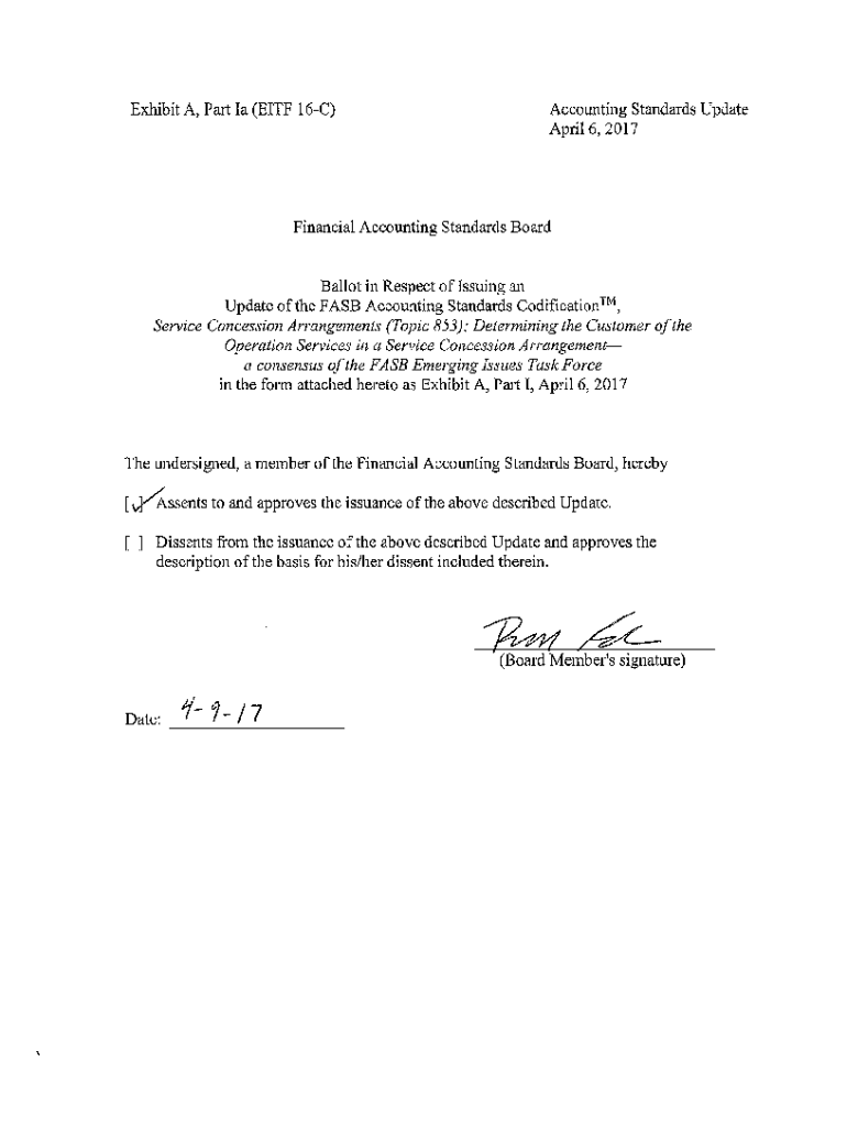 Exhibit A, Part Ta (ITF 16C)Accounting Standards Update April 6,2017Financial Accounting Standards BoardBallot in Respect of Issuing an Update of the FAST Accounting Standards Codification TM, Service