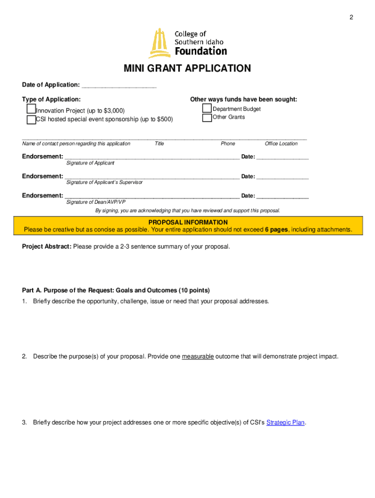 1MiniGrant Guidelines REQUIREMENTS 1. The CSI Foundation minigrants are awarded to faculty, staff, and administration for new, innovative projects that aren't able to be financially supported by the
