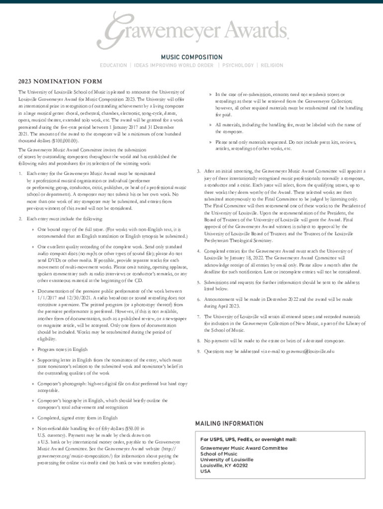 Get the free 2023 NOMINATION FORM MUSIC COMPOSITION MAILING ...